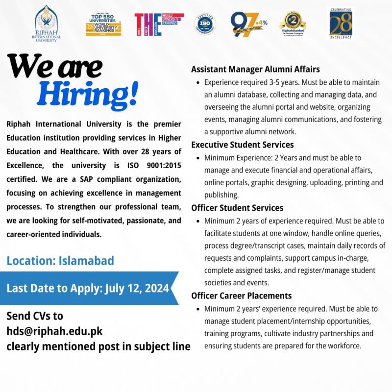 Non-Teaching Jobs at Riphah International University