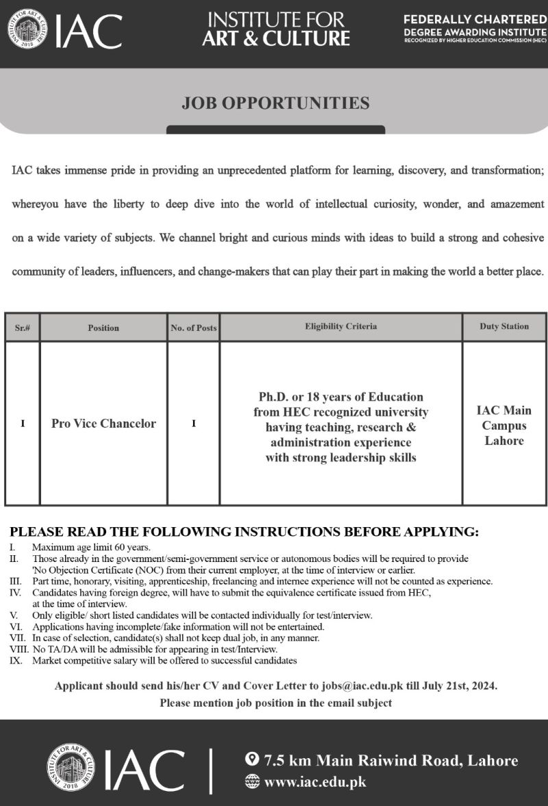 Apply at jobs@iac.edu.pk