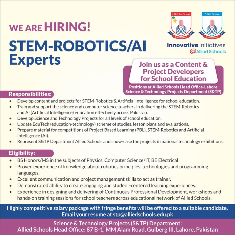 Email your resume at: stp@alliedschools.edu.pk