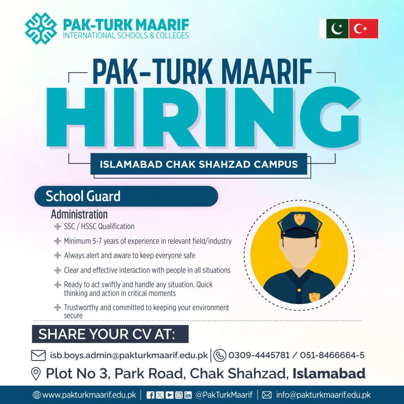 School Guard Job at Pak-Turk Maarif Intl School & Colleges