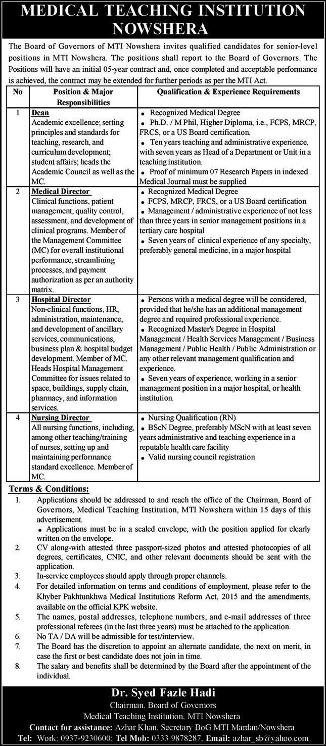 NMC-Nowshera Medical College Nowshera, Management Jobs April 2021