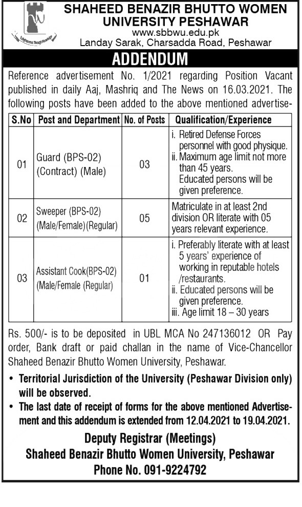 SBBWU-Shaheed Benazir Bhutto Women University, Management Jobs April 2021