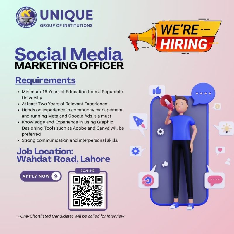 Unique Group of Institutions is hiring for the post of Social Media Marketing Officer on immediate basis. Interested candidates can apply through below mentioned link: