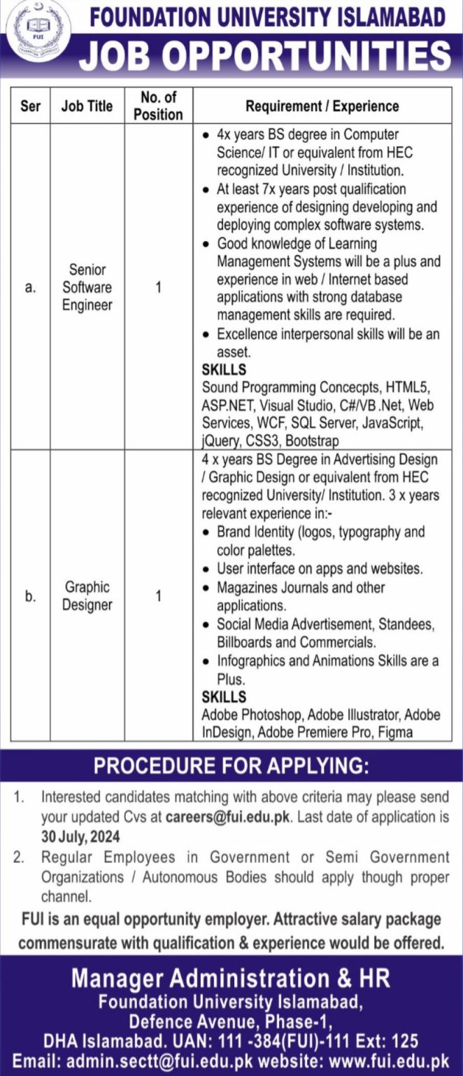 Non-Teaching Jobs at Foundation University