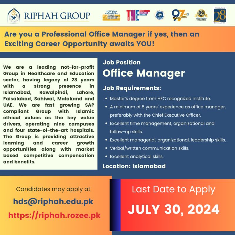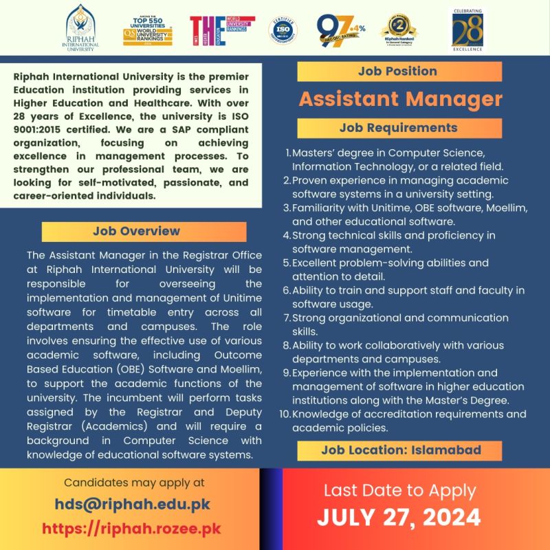 Non-Teaching Jobs at Riphah International University