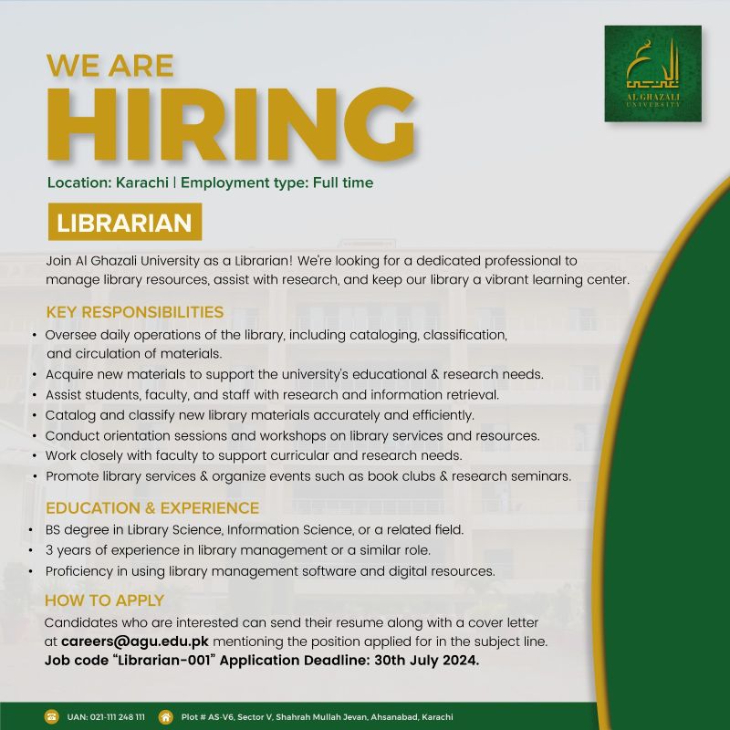 📚 𝐉𝐨𝐢𝐧 𝐀𝐥-𝐆𝐡𝐚𝐳𝐚𝐥𝐢 𝐔𝐧𝐢𝐯𝐞𝐫𝐬𝐢𝐭𝐲 𝐚𝐬 𝐚 𝐋𝐢𝐛𝐫𝐚𝐫𝐢𝐚𝐧! 📚