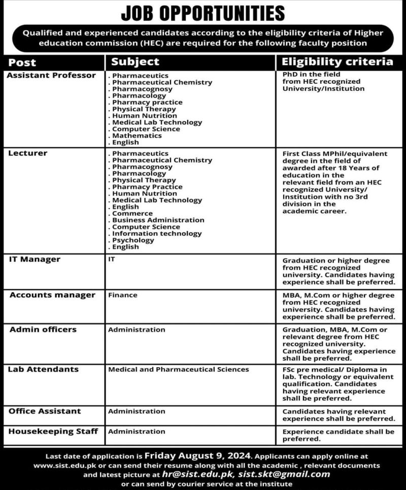 Teaching & Non-Teaching Jobs at #Sialkot #Institute of #Science and #Technology
