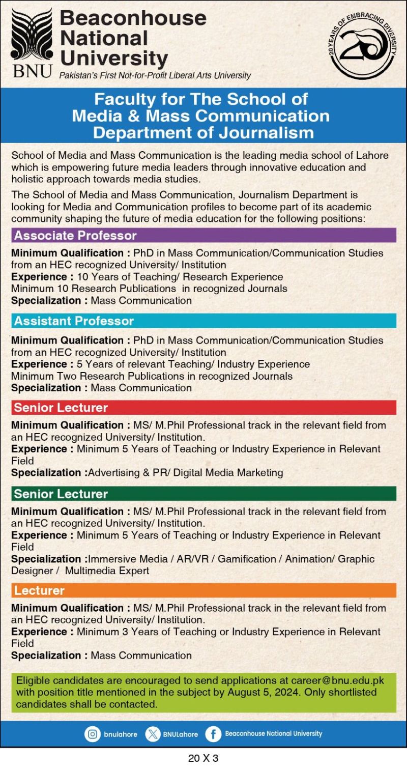 BNU School of Media and Mass Communication is the leading media school of Lahore which is empowering future media leaders through innovative education and holistic approach towards media studies.