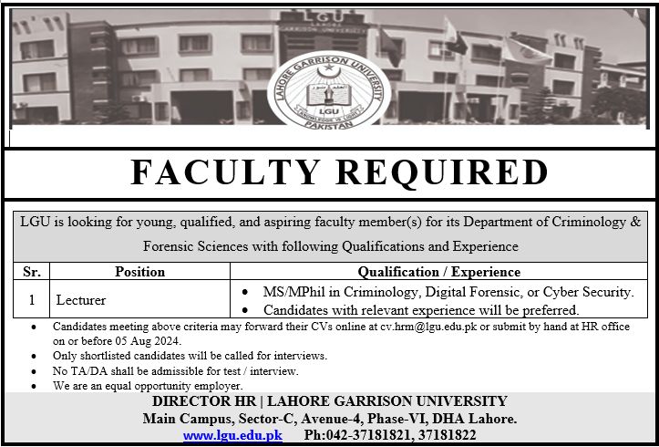 Faculty Positions at Lahore Garrison University