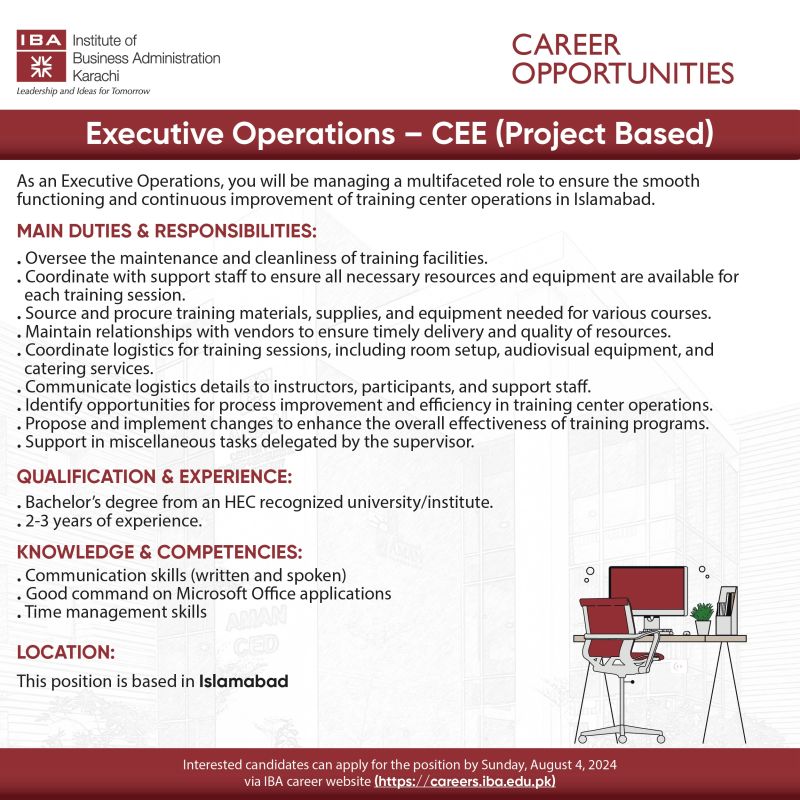 IBA Karachi is looking for a candidate for the position of ‘Executive Operations - CEE (Project Based)’
