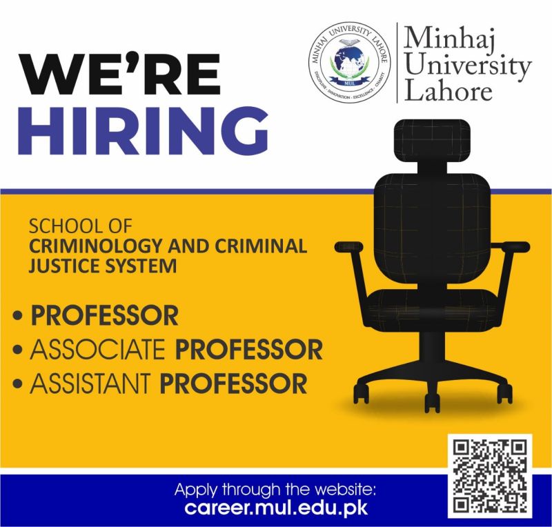 The School of Criminology and Criminal Justice System at Minhaj University Lahore is now hiring! We are looking for passionate and dedicated individuals to join our esteemed faculty. If you have a strong background in criminology and criminal justice, this is your chance to shape the future of education and make a difference.