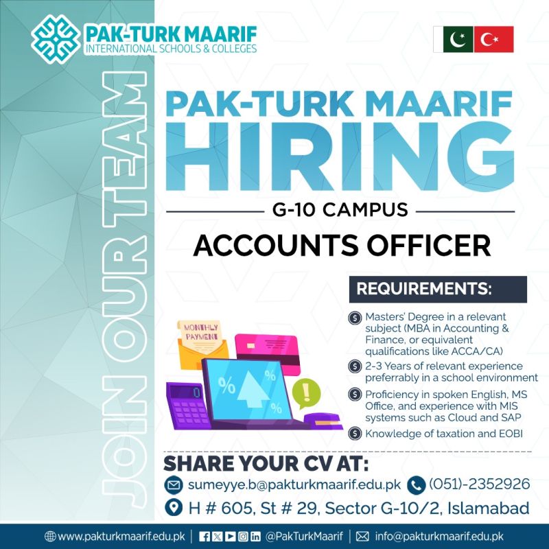 Join our dynamic team at PTMISC as an Accounts Officer at our G-10 Campus Islamabad!