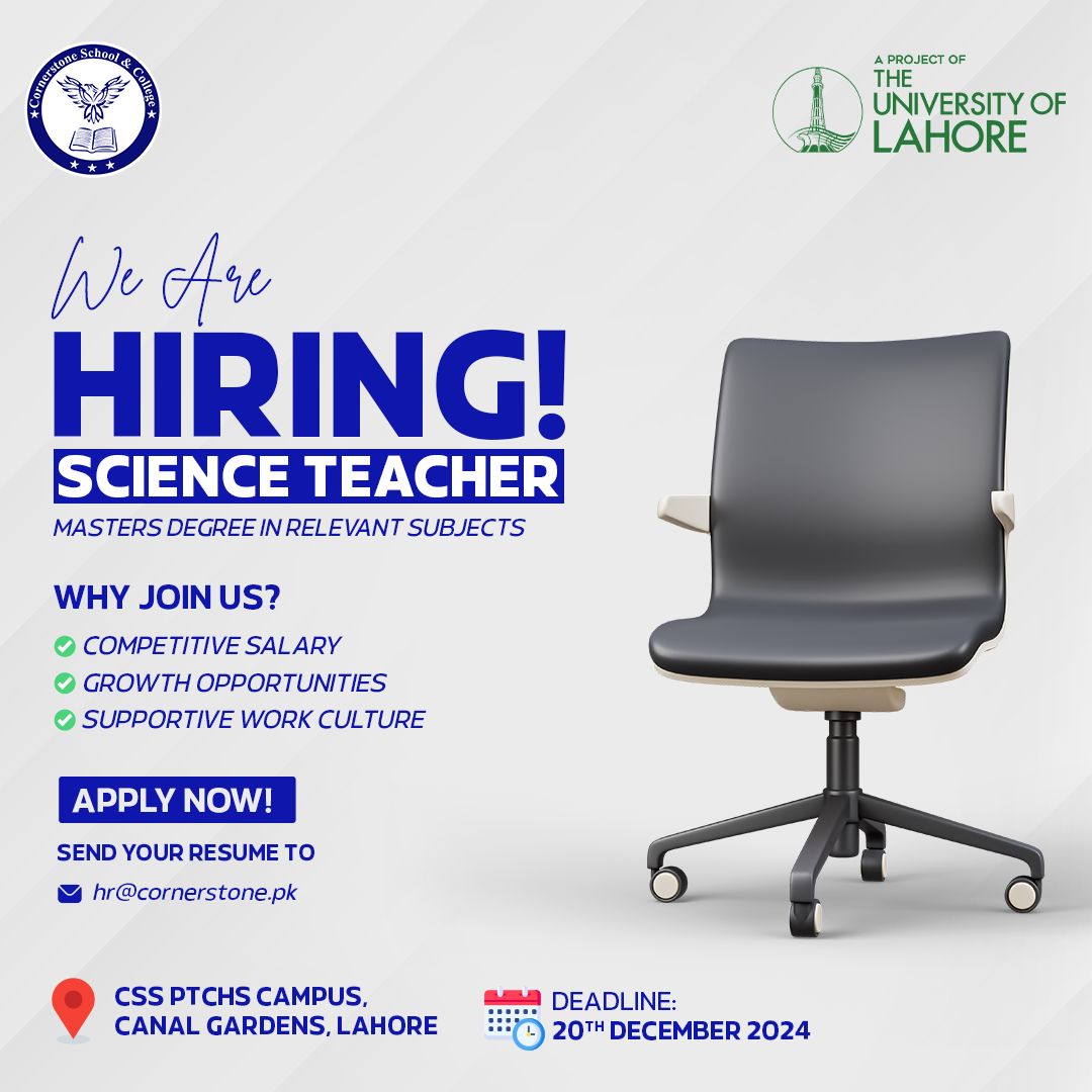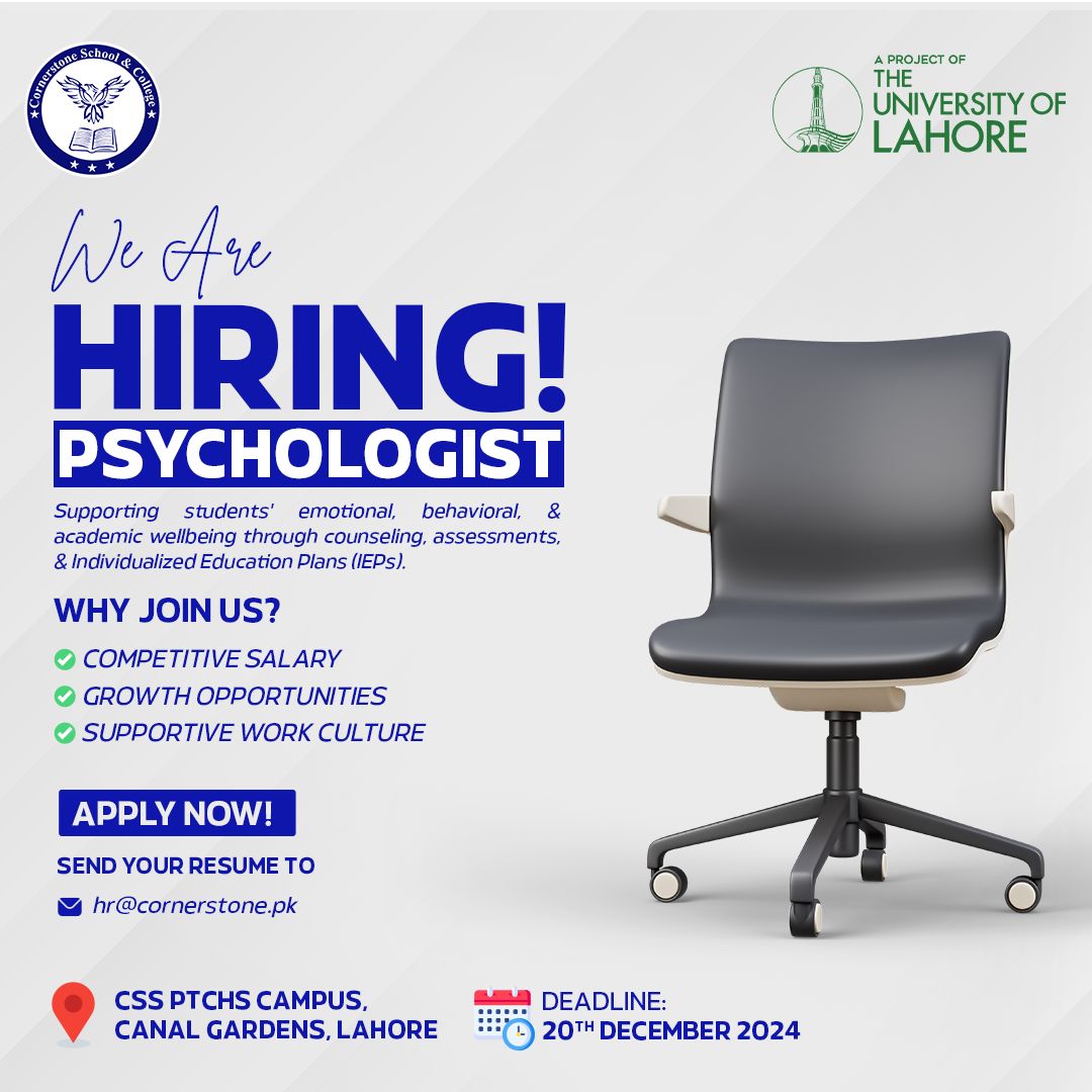 Send your resume to 𝐡𝐫@𝐜𝐨𝐫𝐧𝐞𝐫𝐬𝐭𝐨𝐧𝐞.𝐩𝐤 mentioning position in the Subject line you're applying forand start your journey with Cornerstone School!