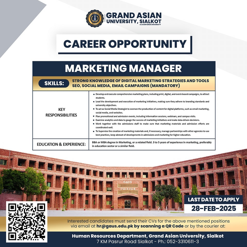 Director Admin, Manager Marketing and other Non-Teaching Jobs at Grand Asian University Sialkot