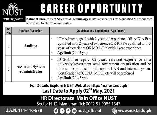 NUST-National University of Science and Technology Islamabad, Management Jobs April 2021
