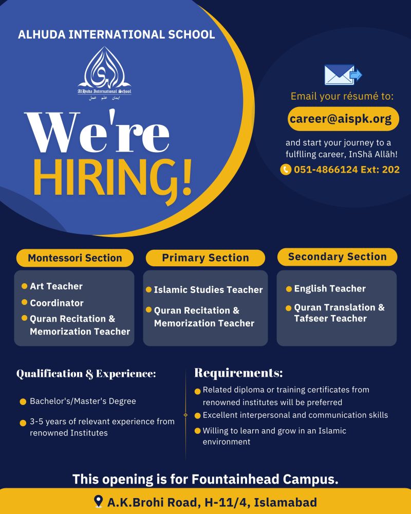 ➡️ Graduates of Al-Huda Institute will be preferred.