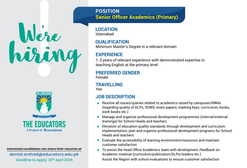 Senior Officer Academics Job at The Educators