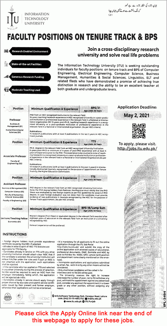 ITU-Information Technology University, Teaching/Faculty Jobs April 2021