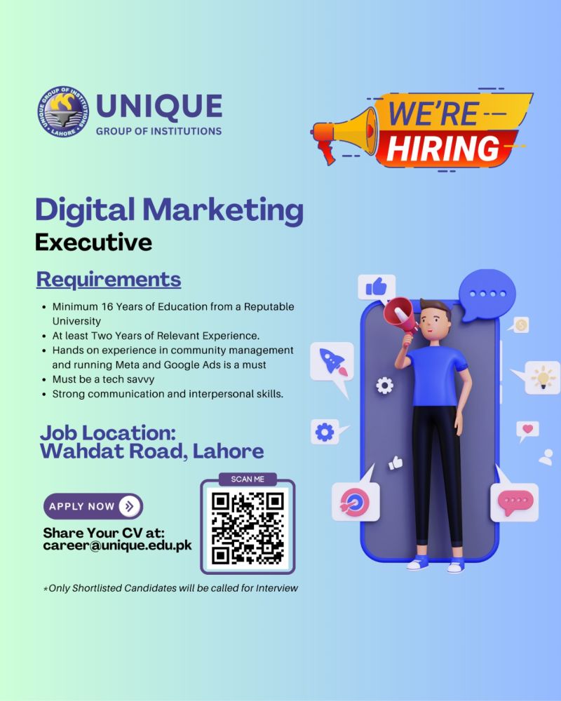 📧 Apply now: Send your CV to career@unique.edu.pk