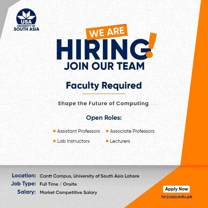 Are you passionate about teaching, research, and shaping the future of technology? The Department of Computer Science at the University of South Asia is expanding and invites applications from highly qualified and motivated individuals for multiple academic positions.
