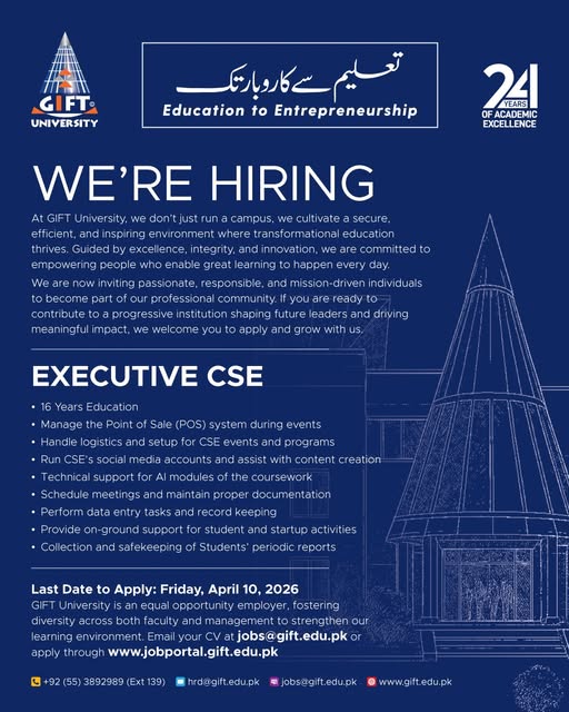 #GIFTUniversity #EducationToEntrepreneurship #JobOpportunity #UniversityJobs #UniversityHiring