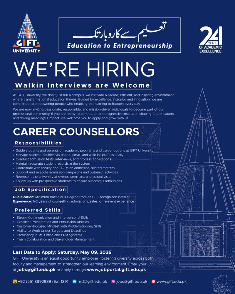 jobs@gift.edu.pk | https://jobportal.gift.edu.pk/job_application.php