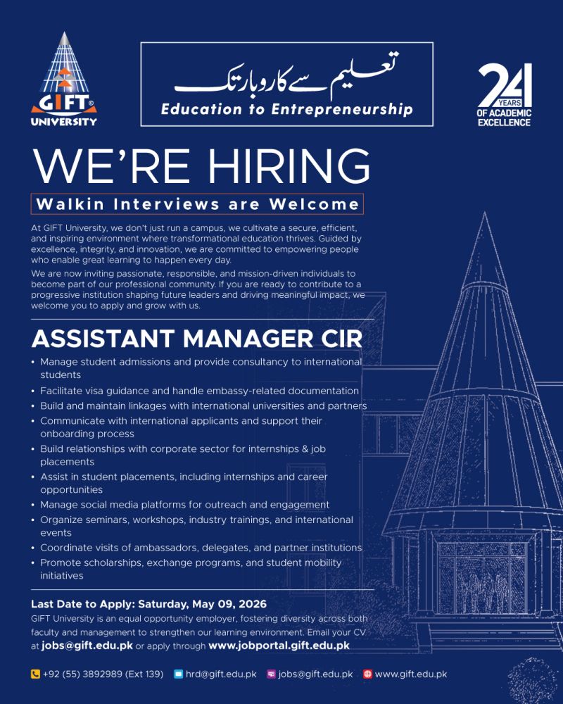 jobs@gift.edu.pk | www.jobportal.gift.edu.pk
