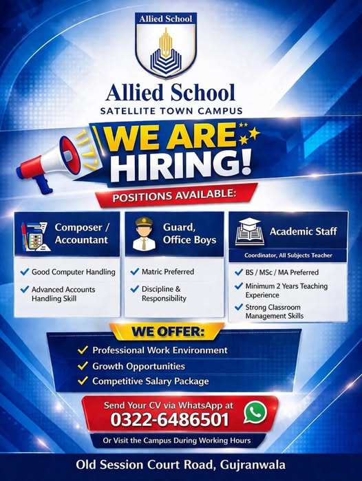 Academic Staff, Accountant, Office Boy & Other Jobs at Allied School