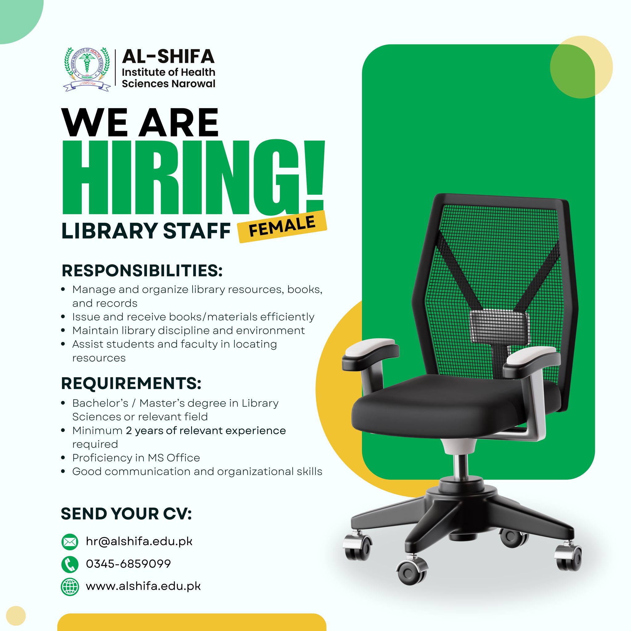 Library Staff Jobs at Al Shifa Institute of Health Sciences