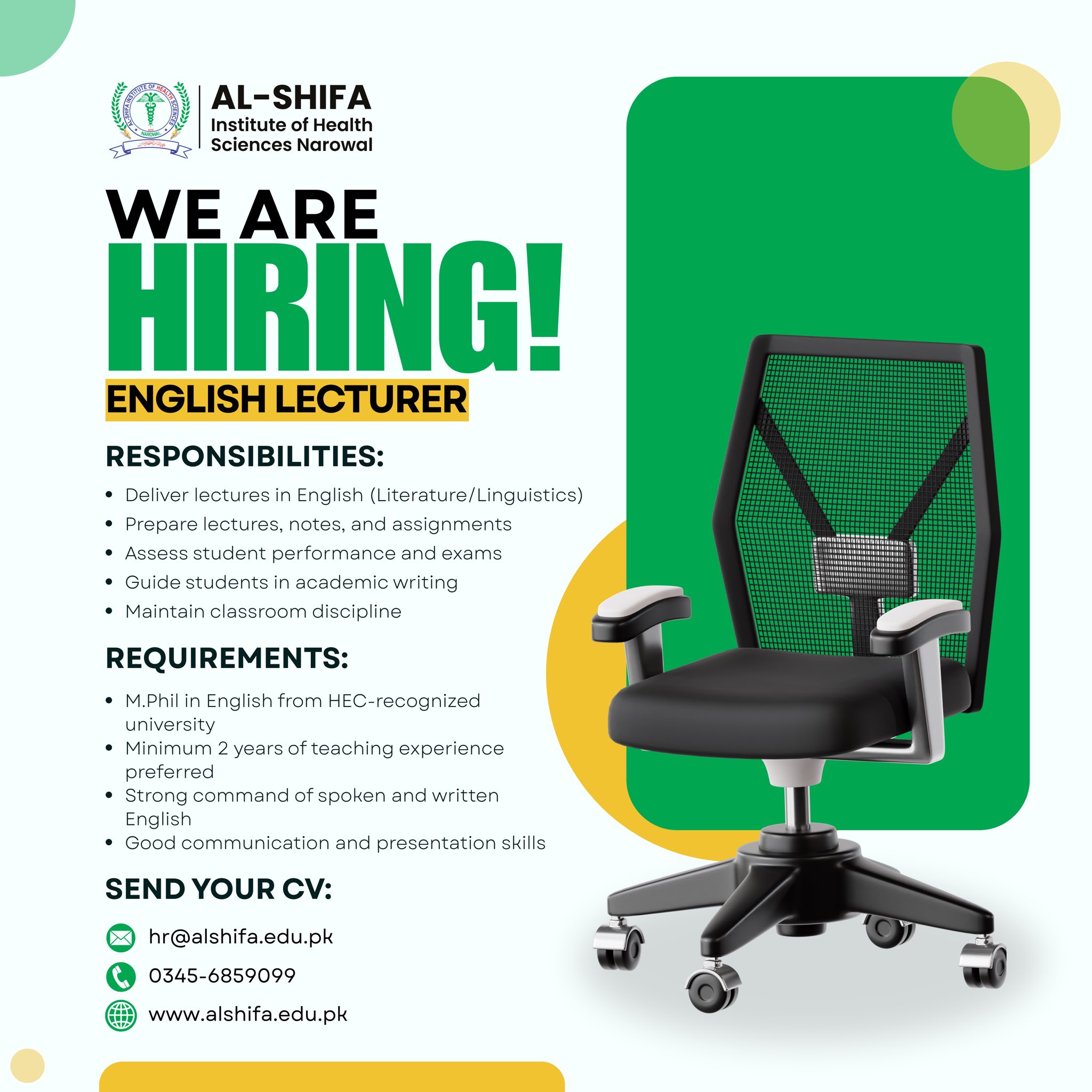 English Lecturer Job at Al Shifa Institute of Health Sciences