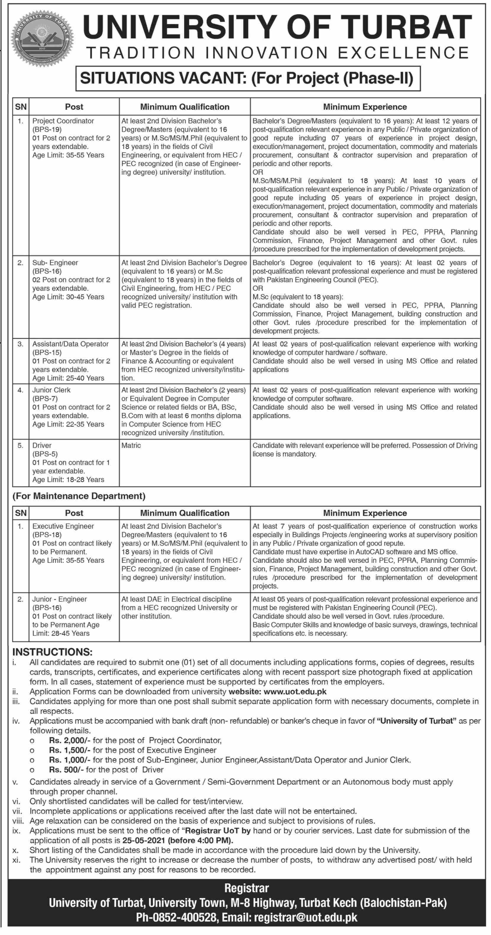 UOT - University of Turbat Jobs, Management Positions April 2021