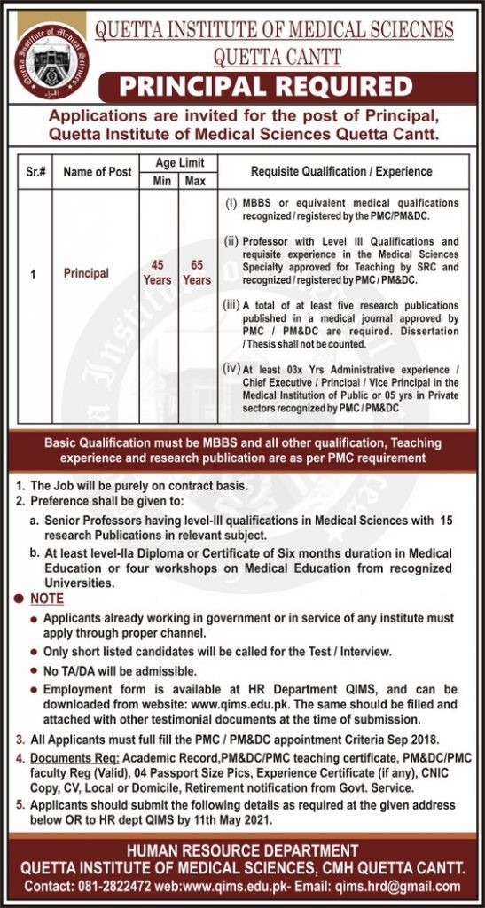 QIMS - Quetta Institute Of Medical Sciences Jobs, Management Positions April 2021