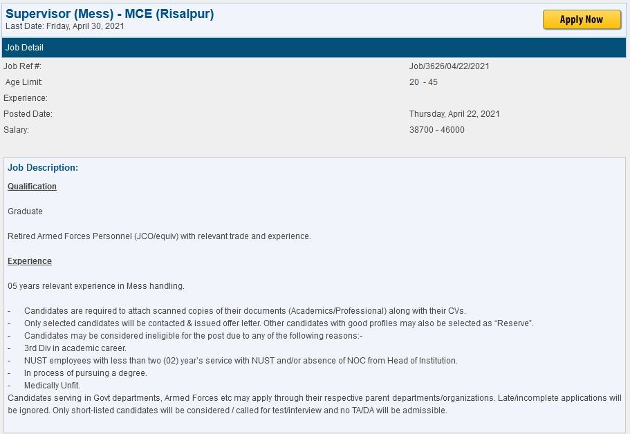NUST - National University of Science and Technology Jobs, Management Positions April 2021