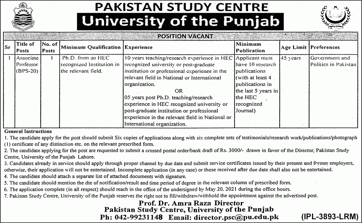 PU -University of the Punjab Jobs, Teaching/Faculty Positions April 2021