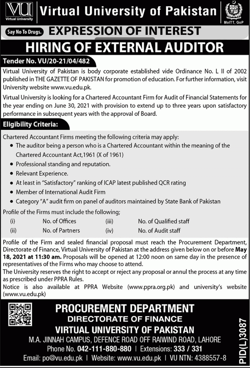 VU - Virtual University of Pakistan Jobs, Management Positions May 2021