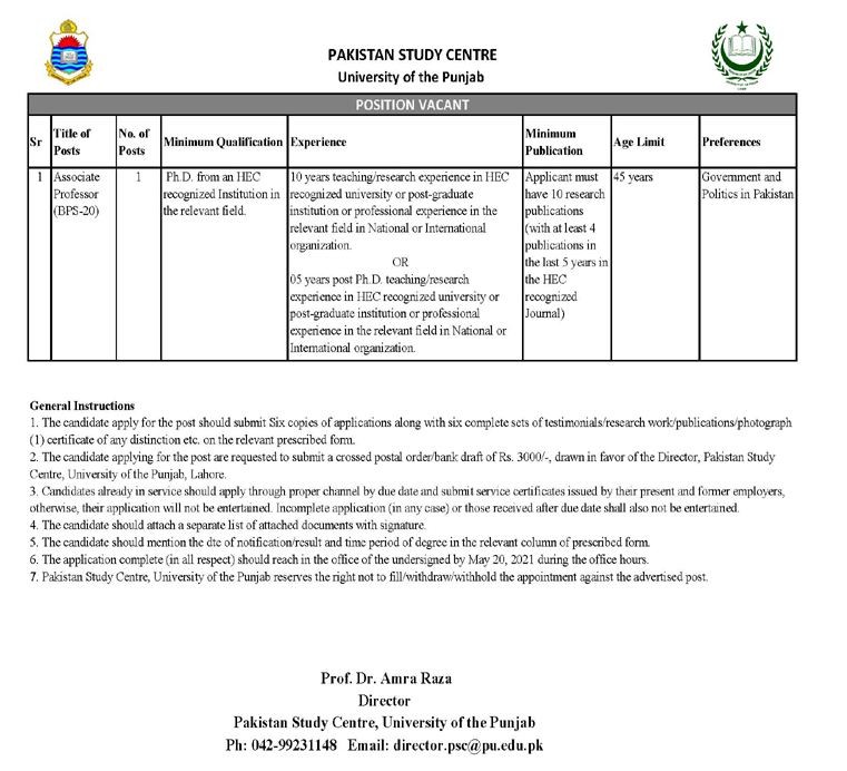 PU - University of The Punjab Jobs, Teaching/Faculty Positions May 2021