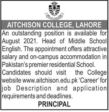 Aitchison College Jobs, Management Positions May 2021