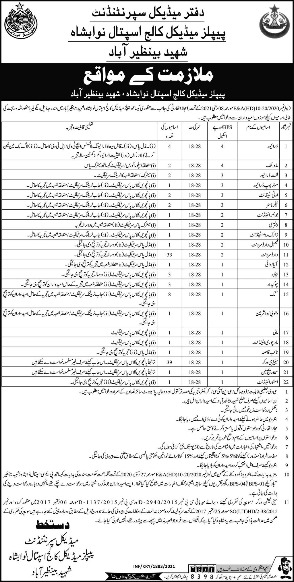 PUMHSW - Peoples University of Medical and Health Sciences for Women Jobs, Management Positions May 2021
