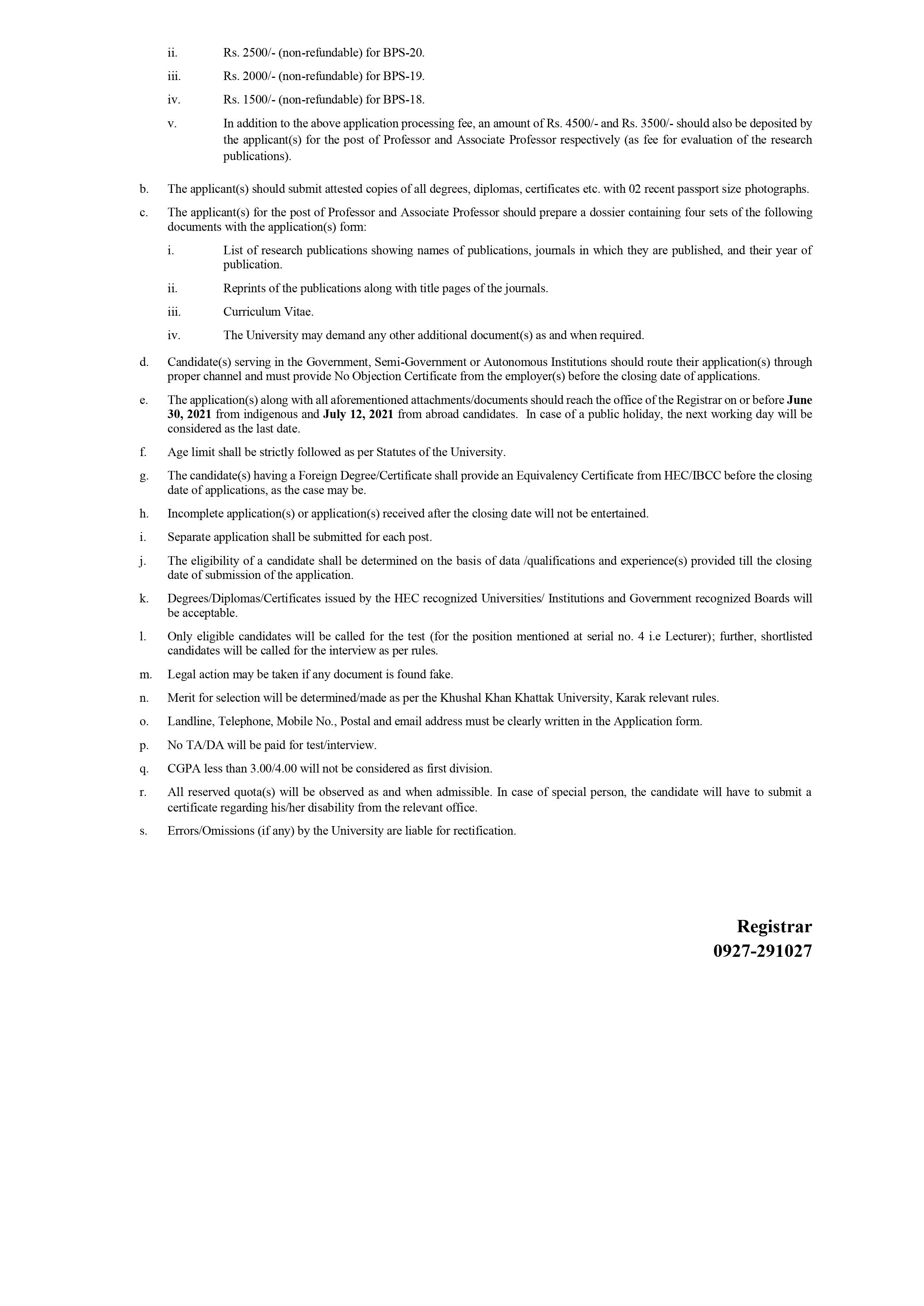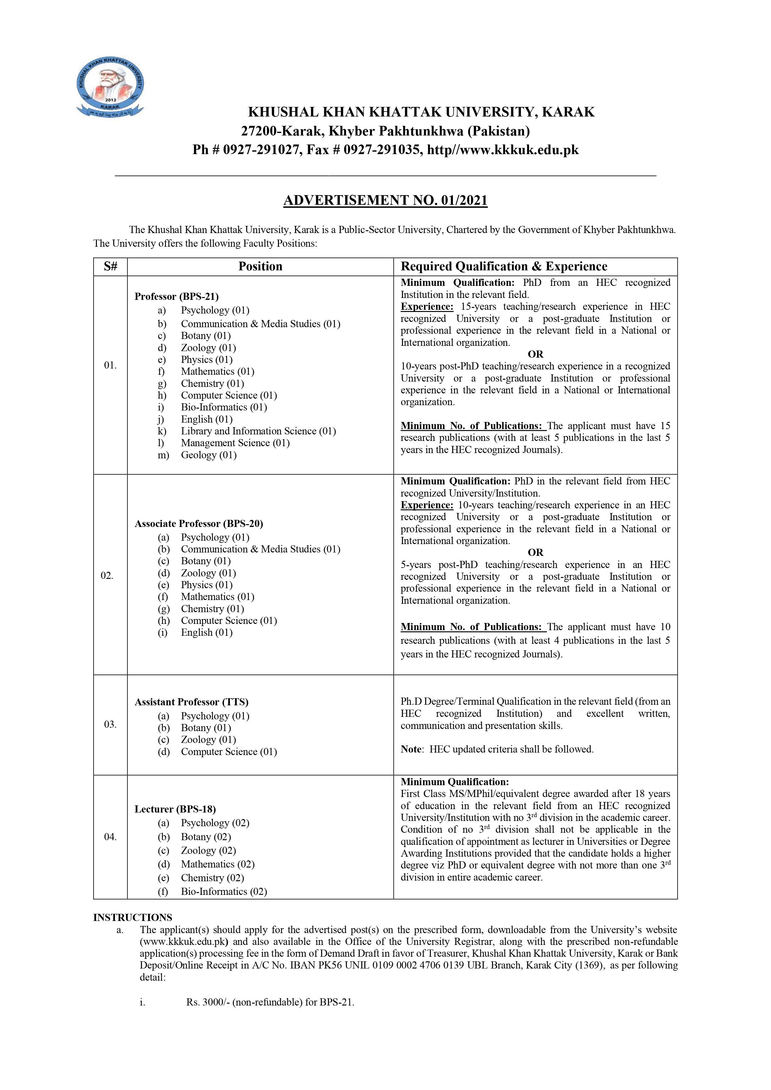 KKKUK - Khushal Khan Khattak University Jobs, Teaching/Faculty Positions June 2021