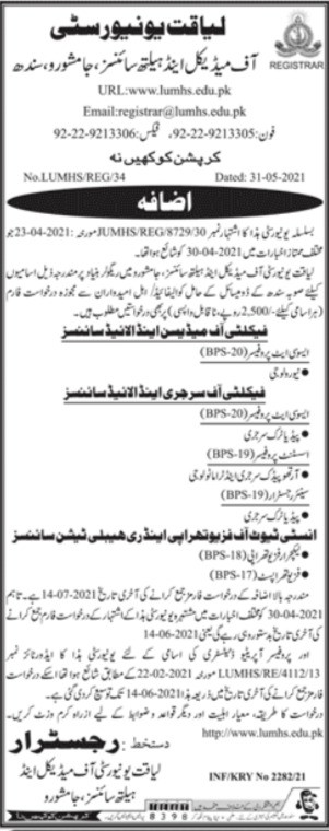 Liaquat University of Medical and Health Sciences Jobs, Teaching/Faculty Positions June 2021