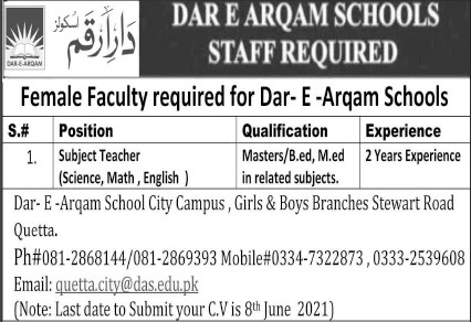 Dar-e-Arqam Schools Jobs, Teaching/Faculty Positions June 2021