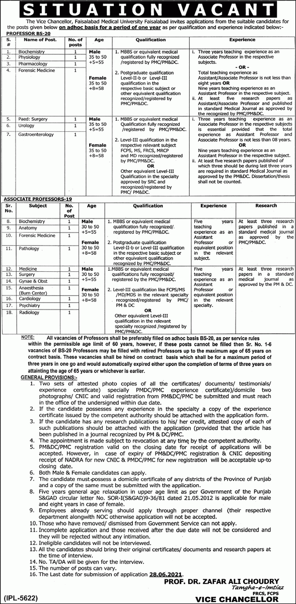 FMU - Faisalabad Medical University Jobs, Teaching/Faculty Positions June 2021