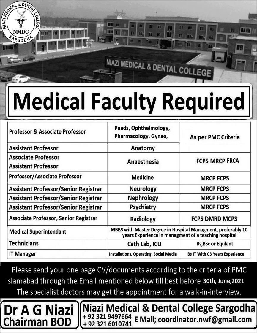 NMDC - Niazi Medical & Dental College Jobs, Teaching/Faculty & Management Positions June 2021