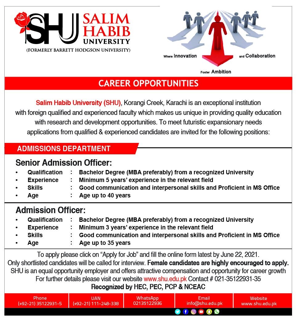 SHU - Salim Habib University Jobs, Management Positions June 2021