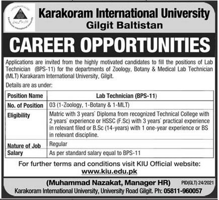 KIU - Karakoram International University Jobs, Management Position June 2021