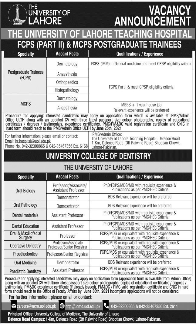 UOL - The University of Lahore Jobs, Teaching/Faculty & Management Positions June 2021