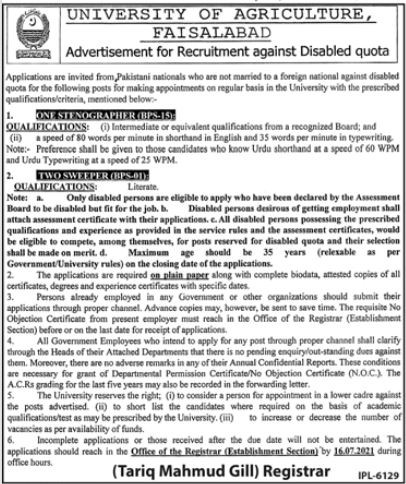 UOA - University of Agriculture Jobs, Management Positions June 2021
