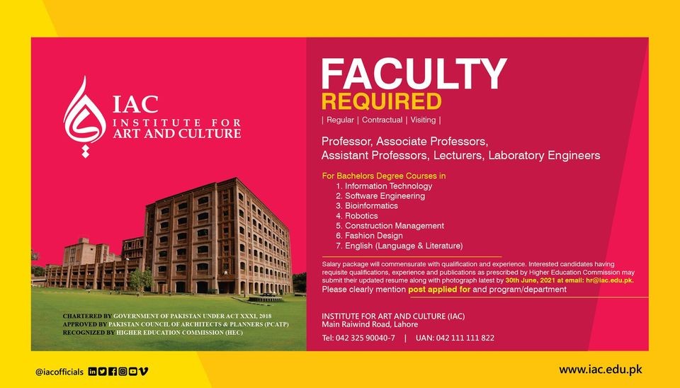 IAC - Institute of Art and Culture Jobs, Teaching/Faculty & Management Positions June 2021