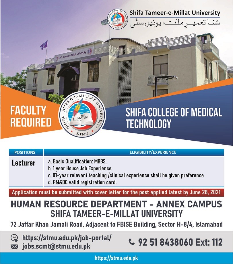 STMU - Shifa Tameer-e-Millat University Jobs, Teaching/Faculty Positions June 2021