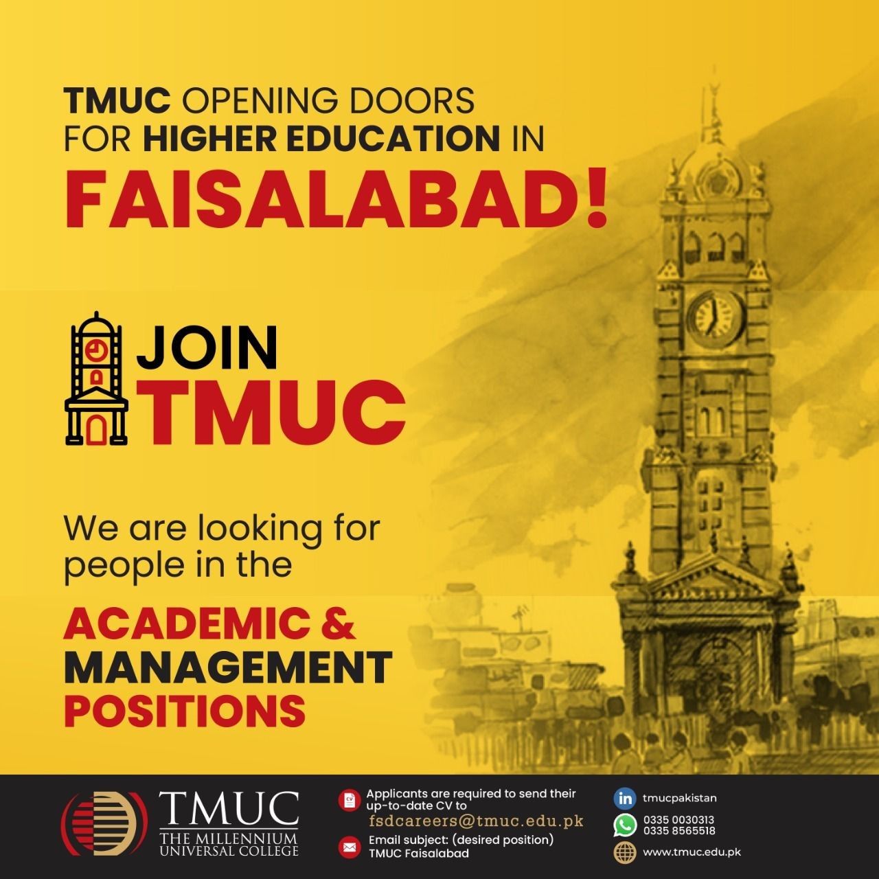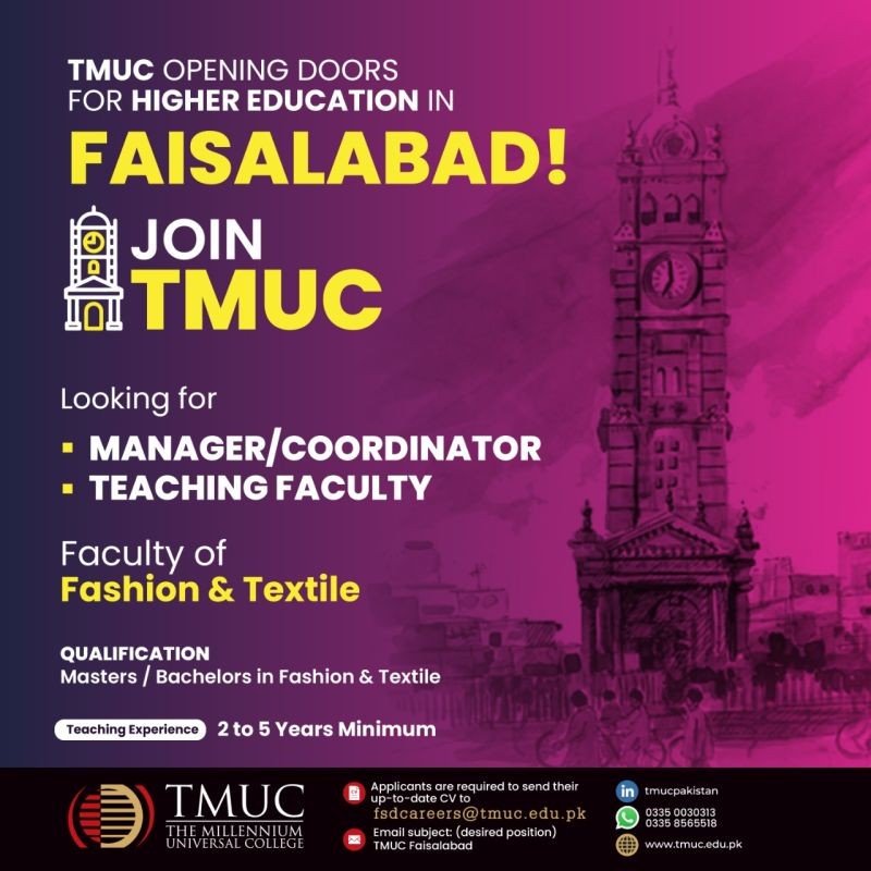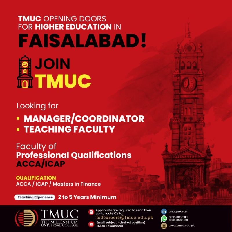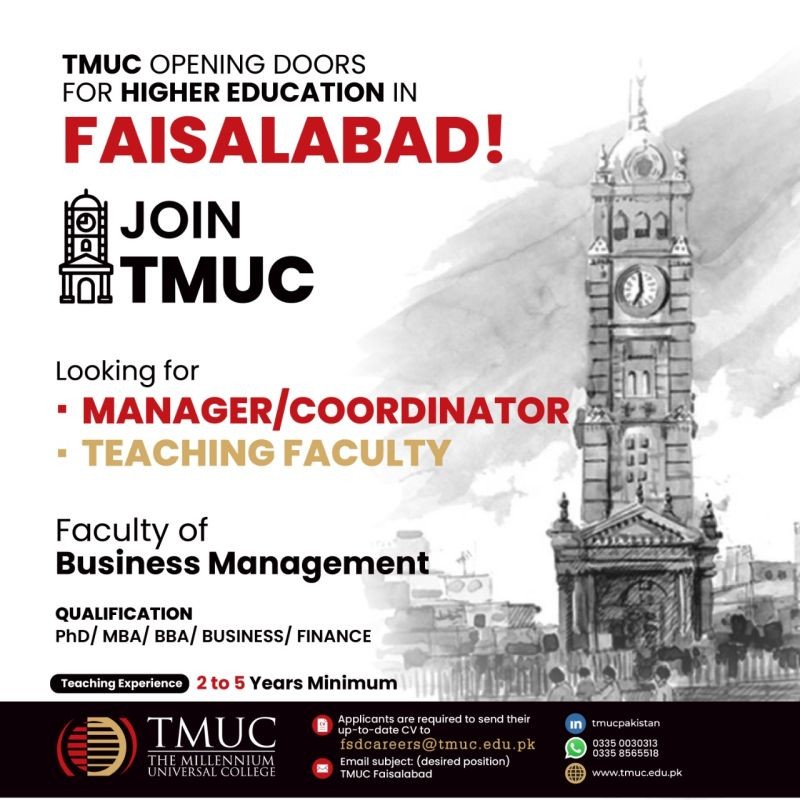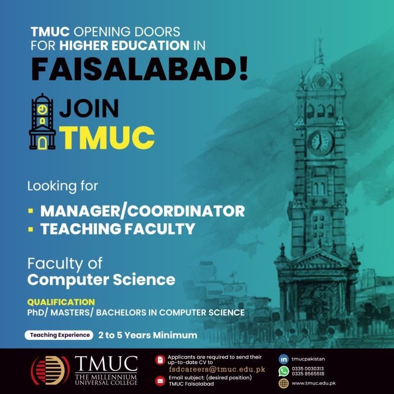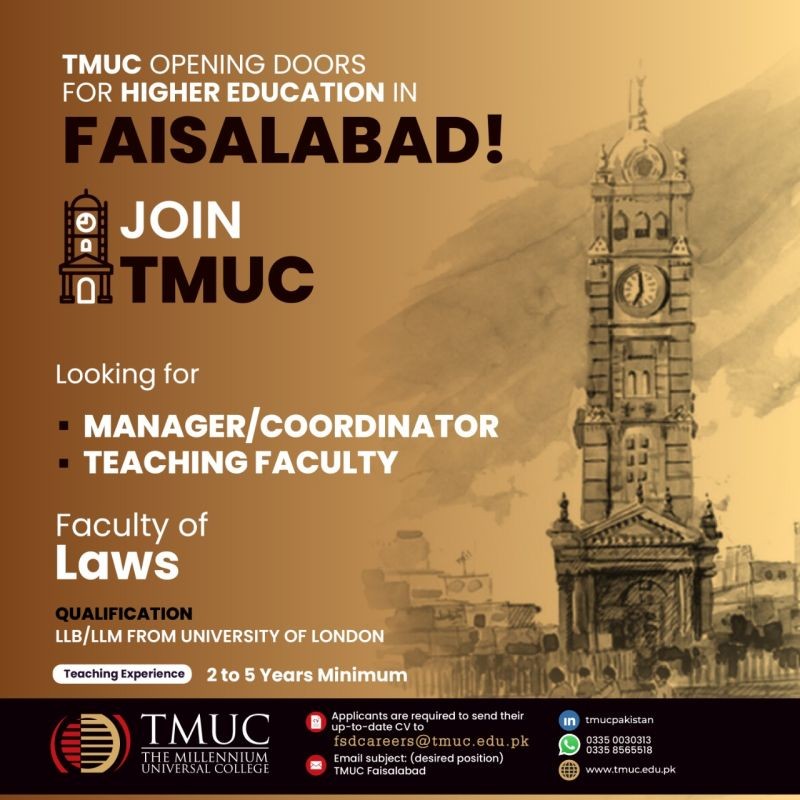 TMUC - The Millennium Universal College Jobs, Teaching/Faculty & Management Positions July 2021